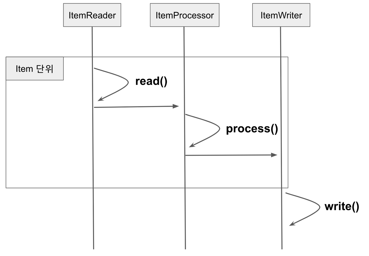 - 이 프로세스는 Chunk의 Item 개수 만큼 처리될 때 까지 계속 진행