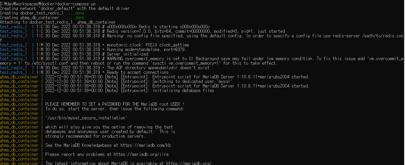 MARIADB_ROOT_PASSWORD: ghma123!@# # container 생성 후 root의 비밀번호를 저장한 파일을 설정함으로써 root 비밀번호를 설정
