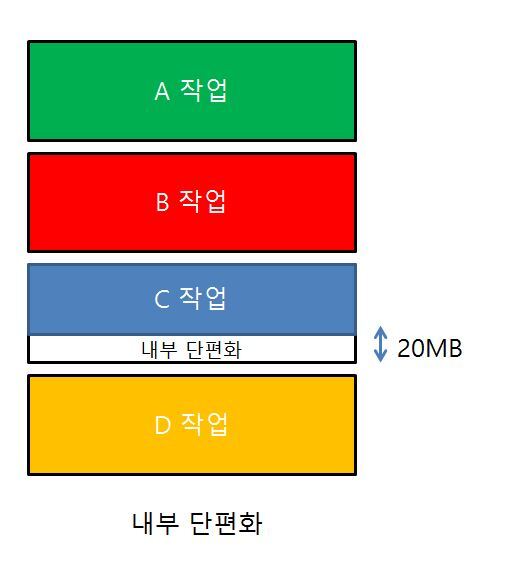 메모리를 나눈 크기보다 프로그램이 작아서 들어가지 못하는 공간이 많이 발생하는 현상