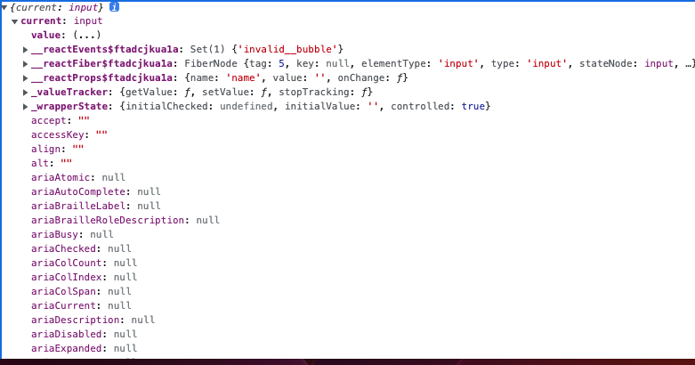 위에서 만든 nameInput 안에 current가 있고, 그 안에 value, style 등등이 있다.