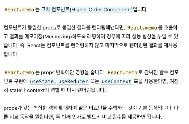 리액트 공식홈페이지에서 memo에 대한 설명을 보면
