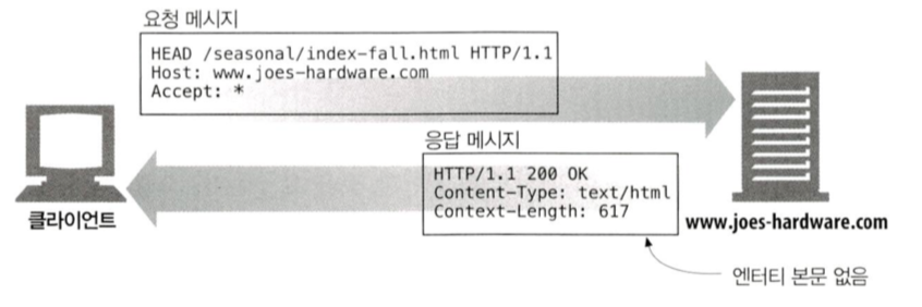 - 메소드는 클라이언트 측에서 서버가 리소스에 대해 수행해주길 바라는 동작.(GET, HEAD, POST 등)