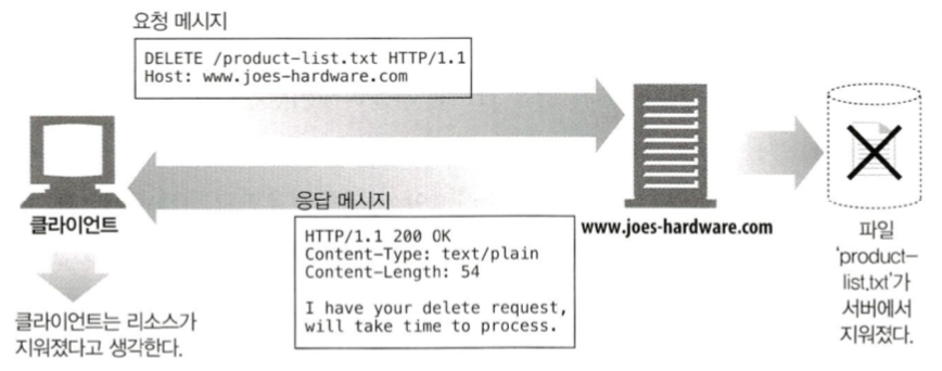 - 서버에게 요청 URL로 지정한 리소스를 삭제할 것을 요청