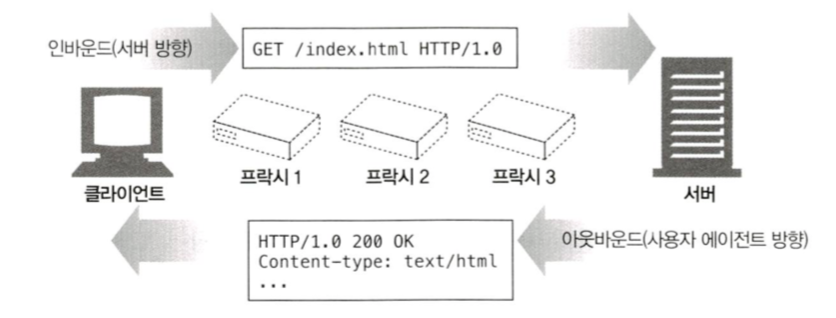- 클라이언트, 서버, 프록시 사이에서 흐름