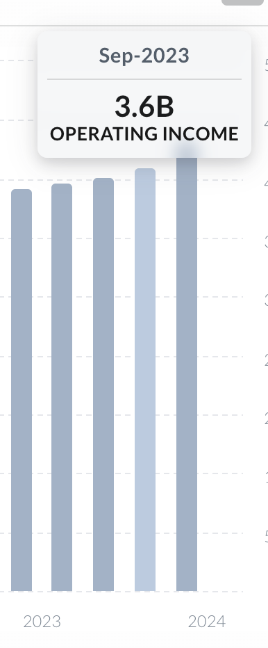- 9월, 12월의 영업 이익은 0.3B가 증가했다.