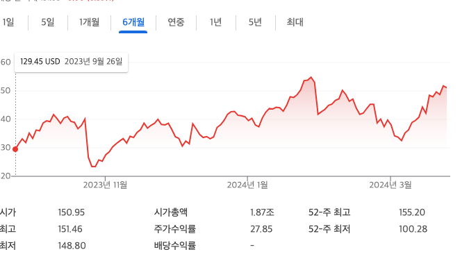 엔비디아에 역전도 당하고... 향후 어떻게 될지 그치만 6개월에 비해 상승했으므로 갖고 있다면 가져가도 좋을듯 싶다.