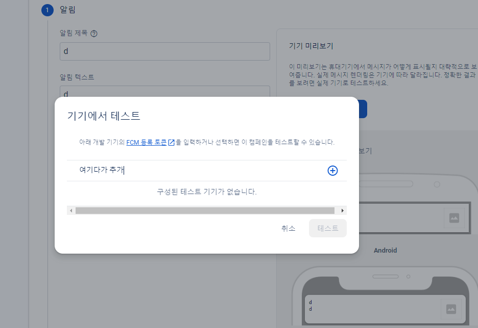 기기 FCM 토큰 입력해주면