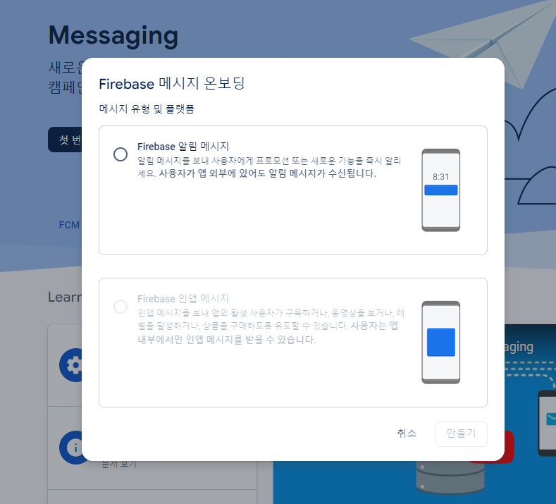 cloud messaging 클릭