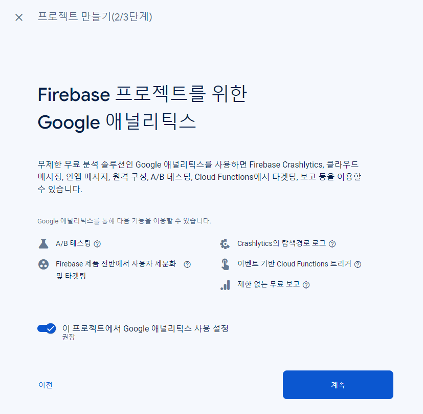 firebase 사이트 접속 후 프로젝트 생성