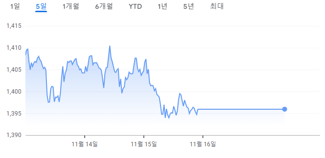 1410원 까지 갔었다.