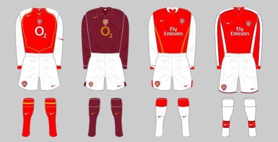 아스널이 1913년부터 사용해온 홈구장 하이버리에서의 마지막 시즌을 기념하기 위해, 구너스는 특별한 레드커런트 컬러 유니폼을 입었다. 이 유니폼은 하이버리 초창기 시절 입었던 셔츠 색을 기리기 위해 디자인되었으며, 금색 레터링이 새겨져 있었고 흰색 반바지와 레드커런트 양말과 함께 착용되었다. 2006/07 시즌, 새로운 홈구장 에미레이트 스타디움에서의 첫 시즌을 맞이해, 아스널은 다시 전통적인 빨간색과 흰색 조합의 유니폼으로 돌아왔다.