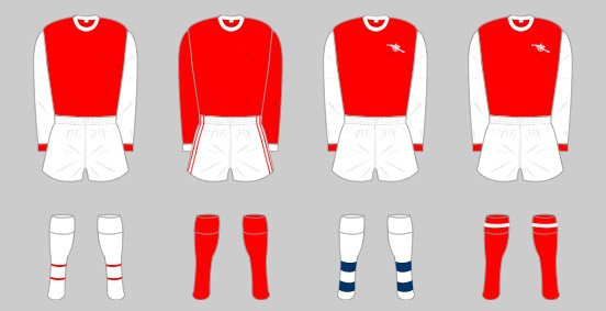 1960년 무렵부터는 기존의 럭비 스타일의 직물 셔츠에서 벗어나, 니트 면 소재의 저지로 바뀌었다. 우리가 잘 아는 대포 그래픽은 1970년대 초에 셔츠에 처음 등장했다. 아스널이 1970/71 시즌에 리그 우승과 FA컵 우승을 동시에 달성하는, 이른바 ‘더블’을 처음으로 기록할 때 입었던 유니폼이 바로 이 셔츠였다.