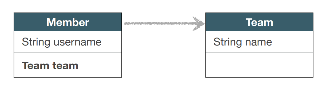 - Member에 프로퍼티로 Team을 가지고 있을 때 em.find로 member을 조회하면 쿼리로 member와 team을 같이 조회한다.