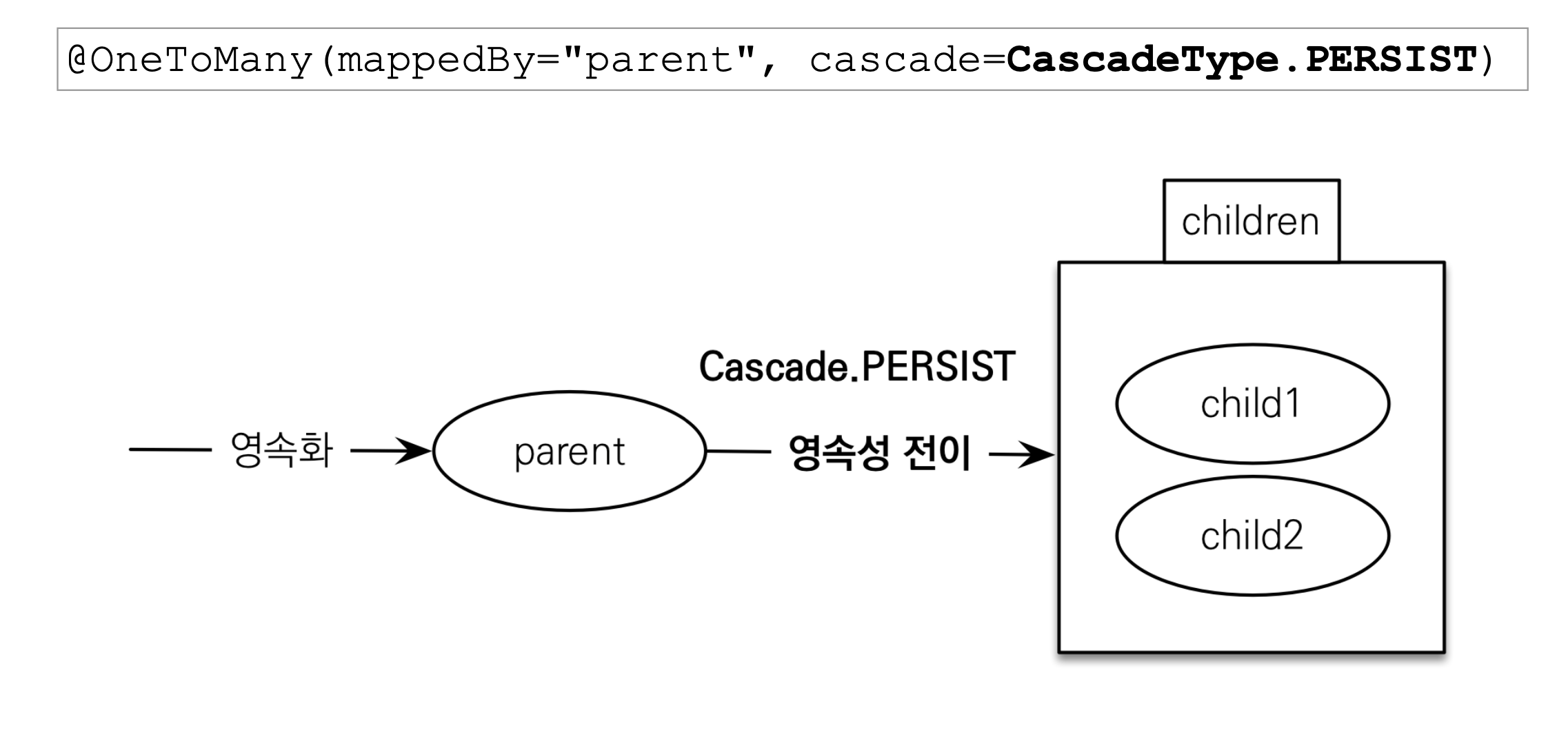 (2) 엔티티를 영속화할 때 연관된 엔티티도 함께 영속화하는 편리함을 제공할 뿐