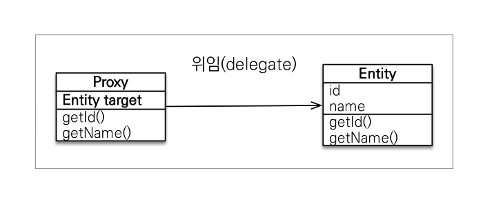 - 프록시 객체는 실제 객체의 참조(target)를 보관