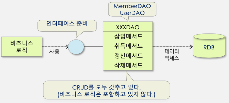 - 데이터 액세스 방식이 바뀌어도 DAO만 변경하면 된다.